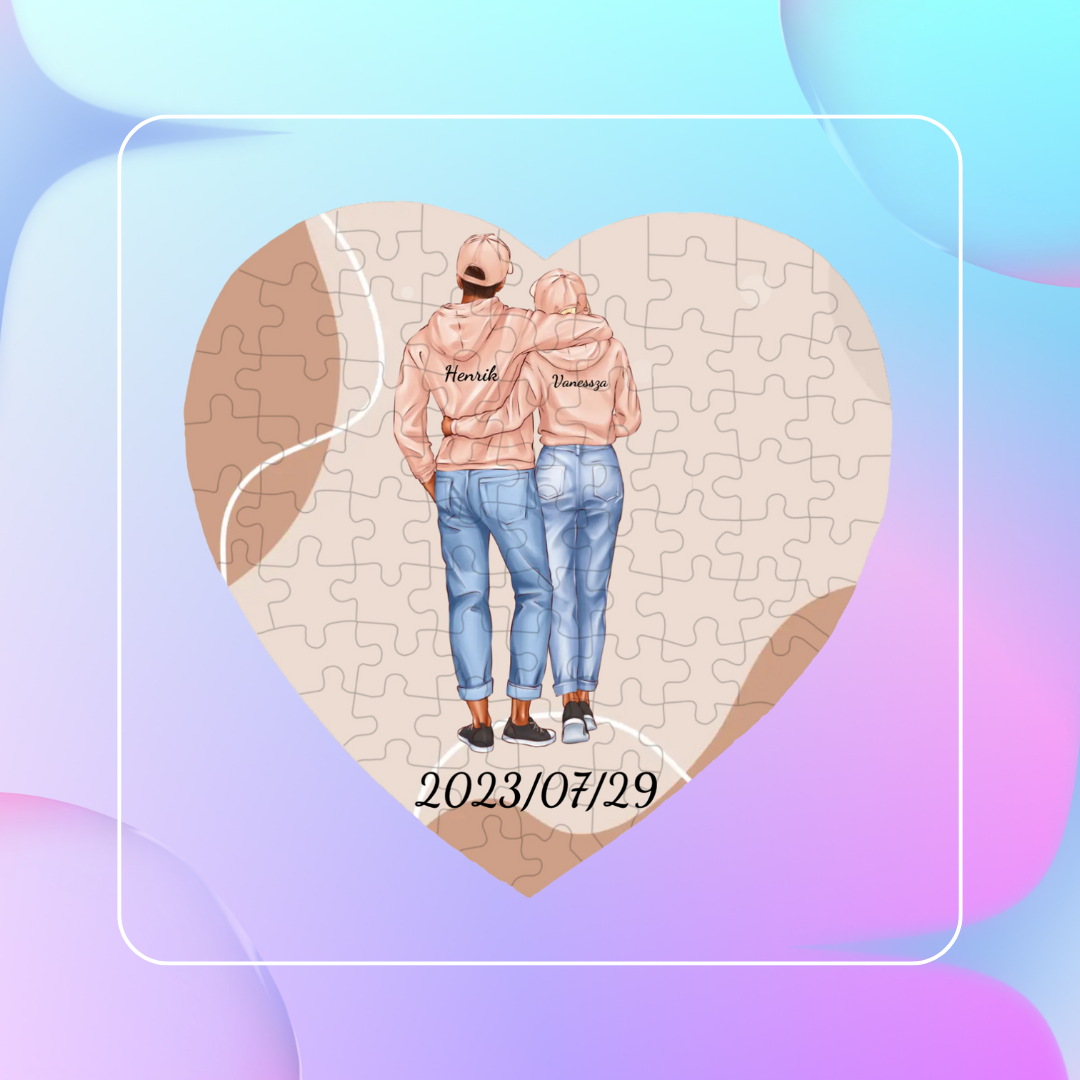 Romantikus pár - Egyedi személyre szabható 75 db-os szív kirakó