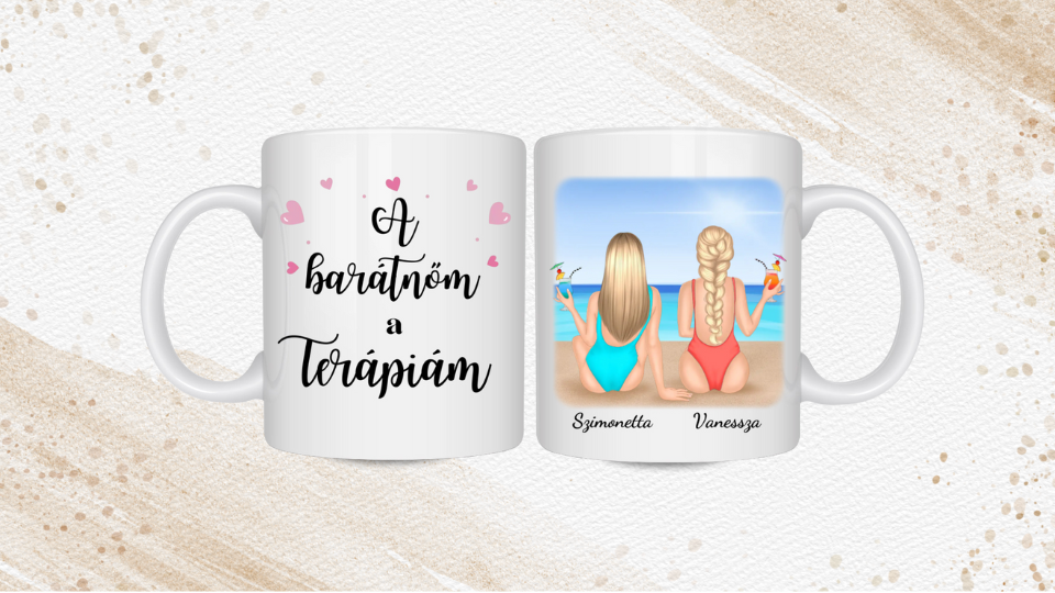 Strandoló legjobb barátnők - Egyedi személyre szabható bögre.