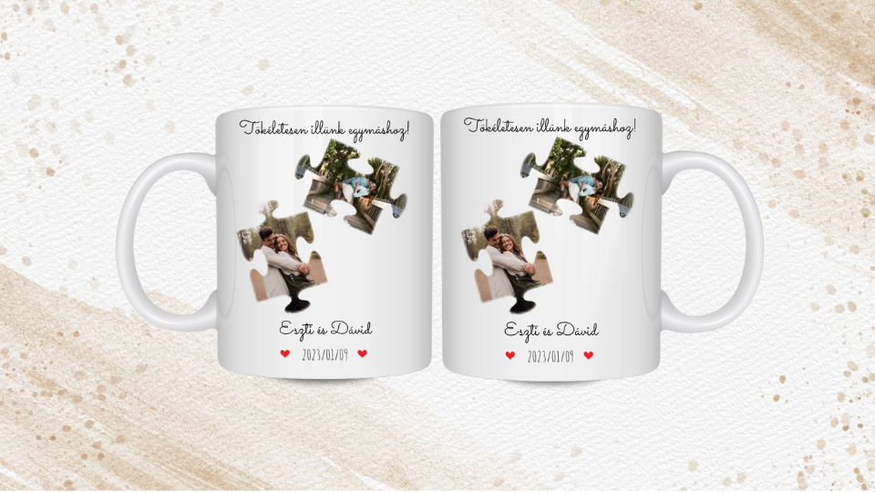 Fejezd ki szereteted párod iránt egyedi bögrével! Ránéz és tudni fogja, hogy Te vagy az Ő másik fele és ketten alkottok egy tökéletes párt! 🧩