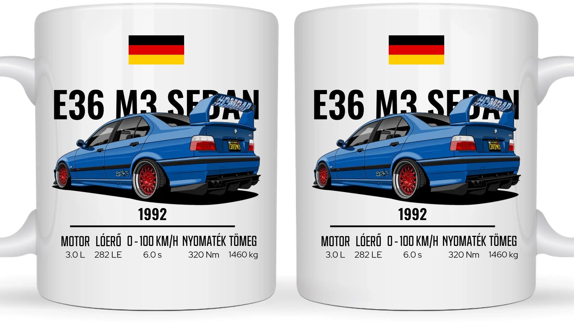 Autó illusztráció - E36 M3 Sedan 69. - Egyedi személyre szabható bögre