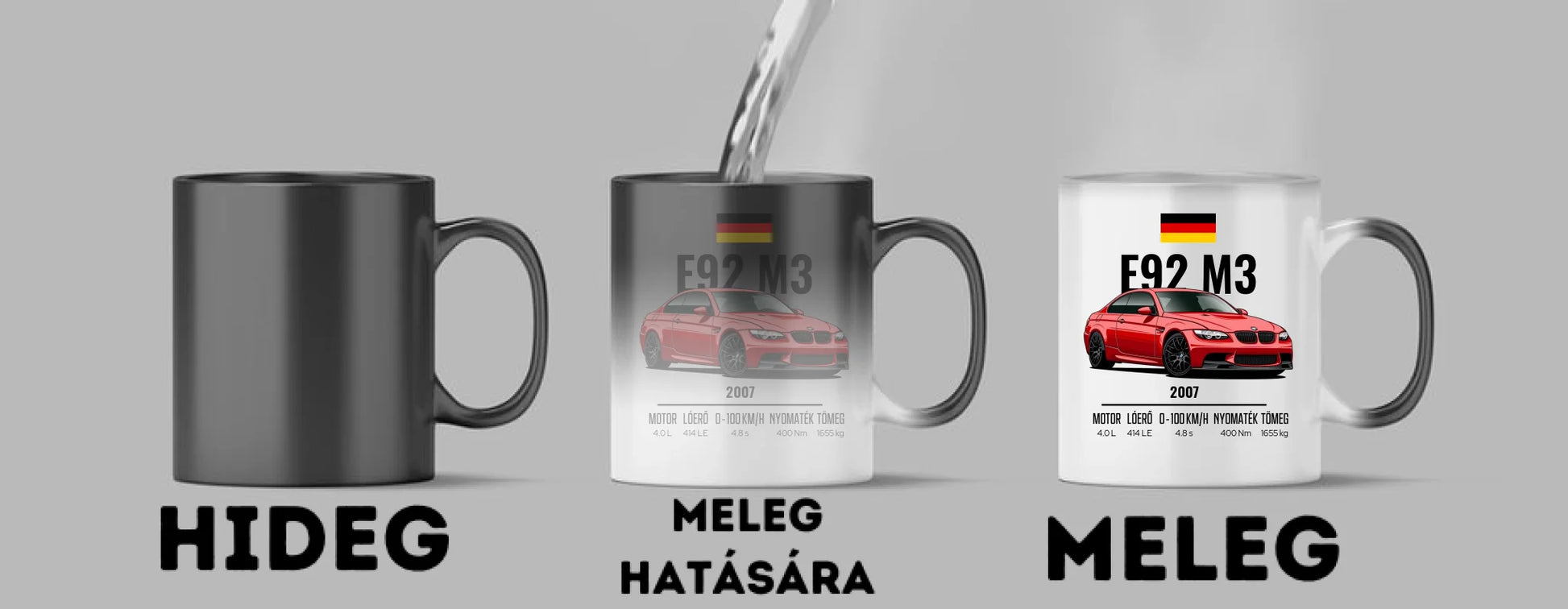 Ez a különleges varázs bögre első ránézésre egy egyszerű, sötét színű bögre, ám forró ital hatására életre kel! Ahogy a bögre felmelegszik, a rejtett minta vagy fotó lassan előtűnik, varázslatos meglepetést okozva minden korty mellett. Ideális választás, ha valami igazán különlegeset keresel.