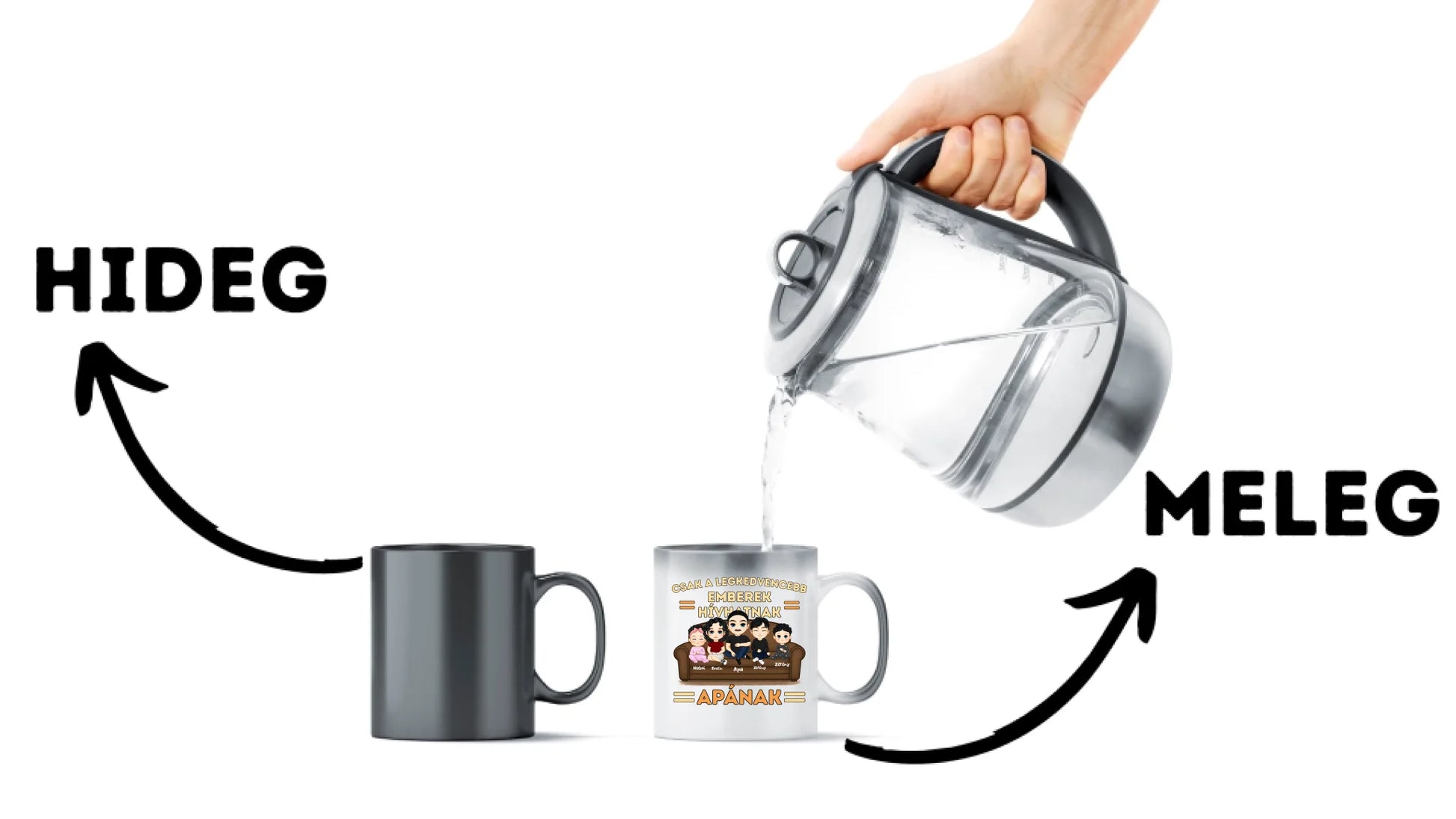 Ez a különleges varázs bögre első ránézésre egy egyszerű, sötét színű bögre, ám forró ital hatására életre kel! Ahogy a bögre felmelegszik, a rejtett minta vagy fotó lassan előtűnik, varázslatos meglepetést okozva minden korty mellett. Ideális választás, ha valami igazán különlegeset keresel.