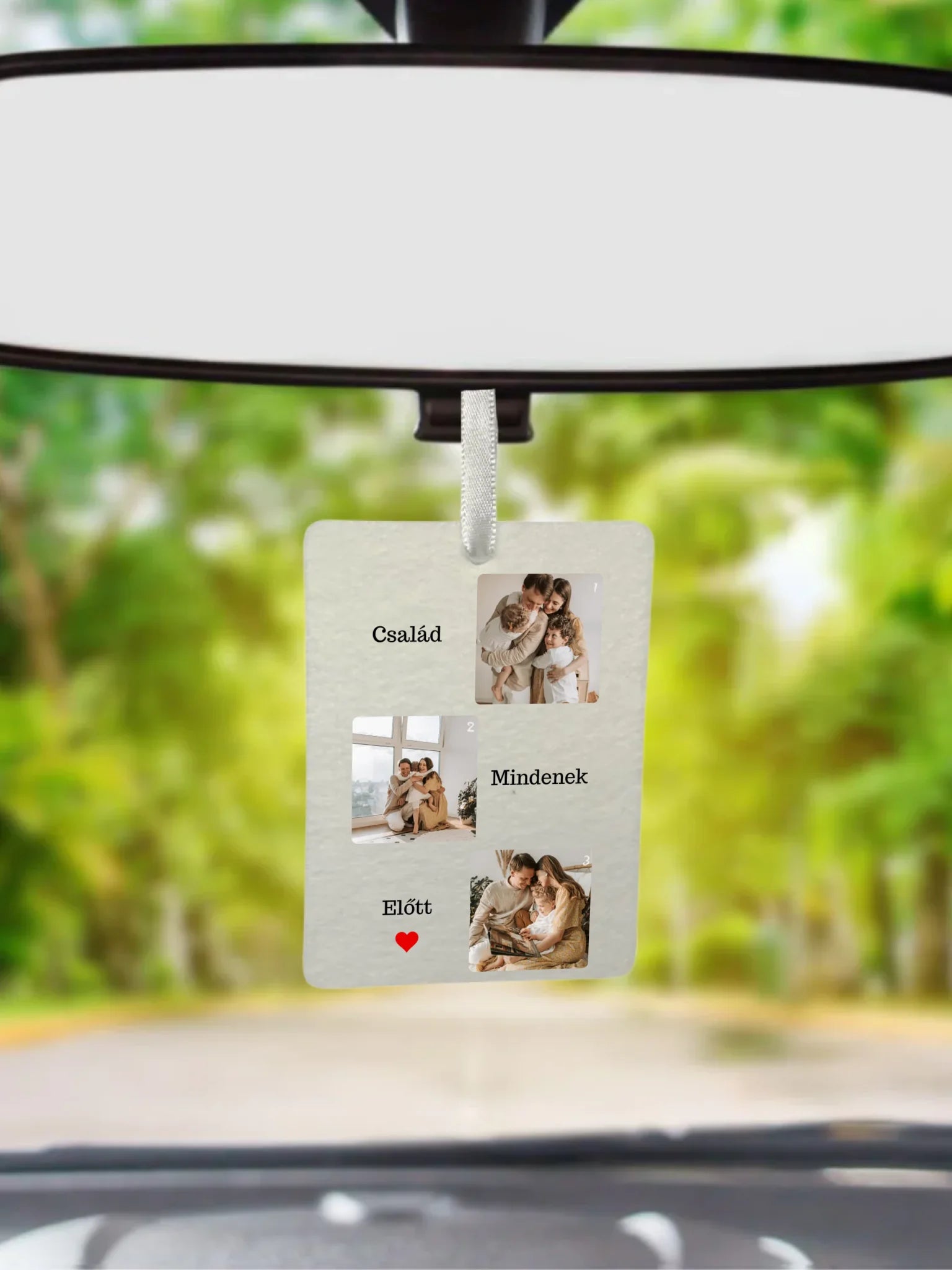 Család mindenek előtt fotókollázs - Ajándék Családnak - Fényképes autóillatosító