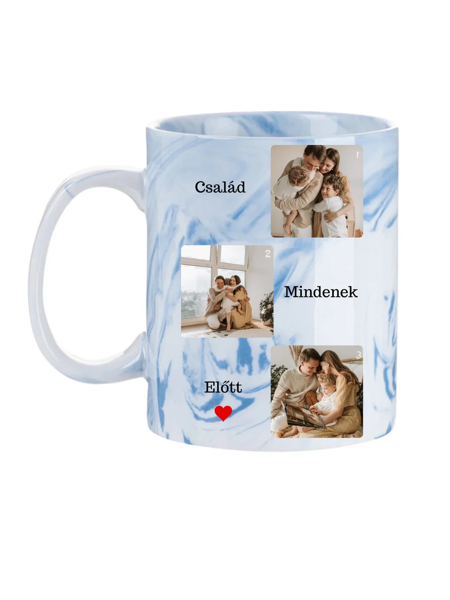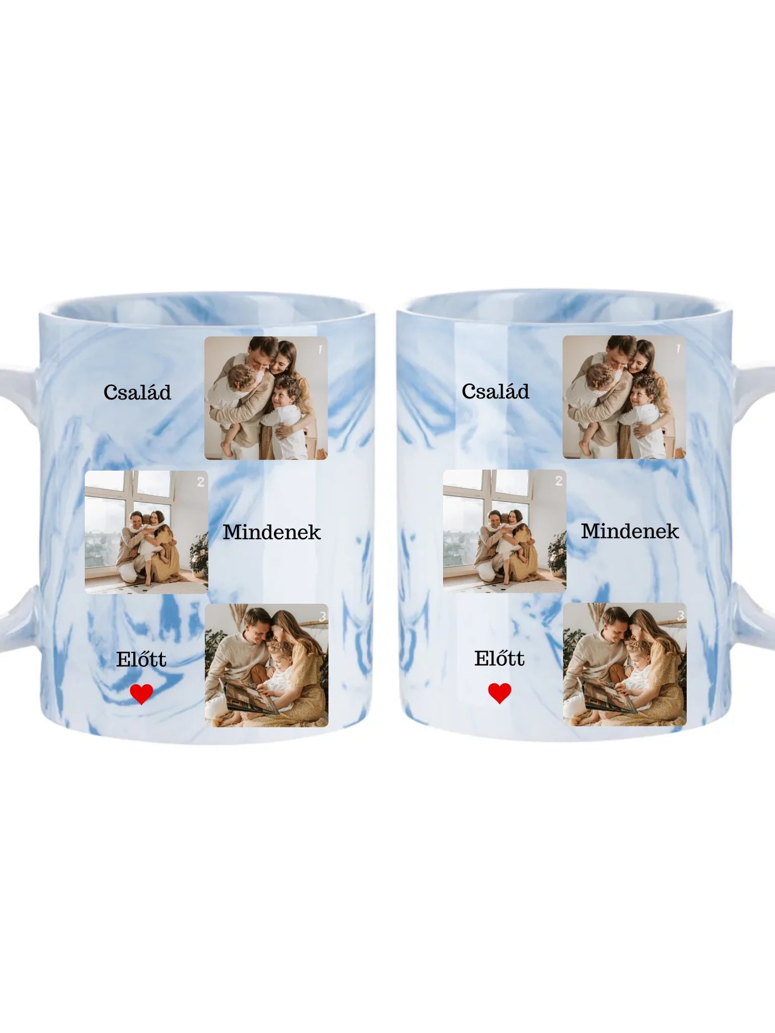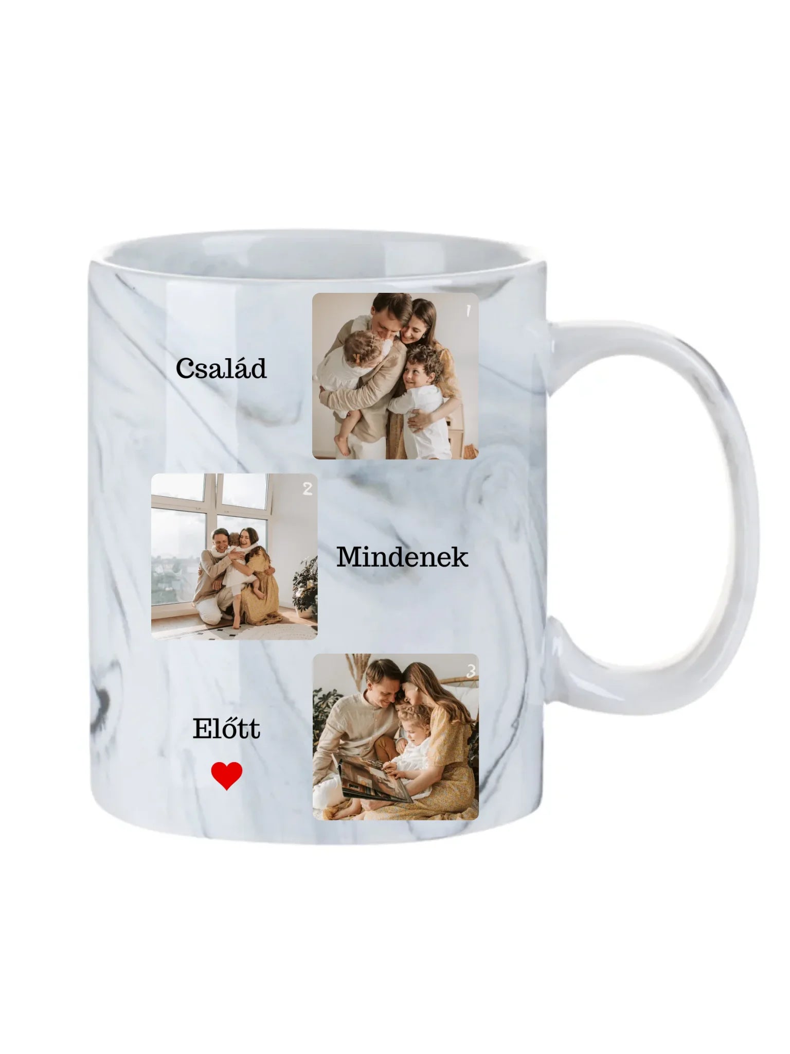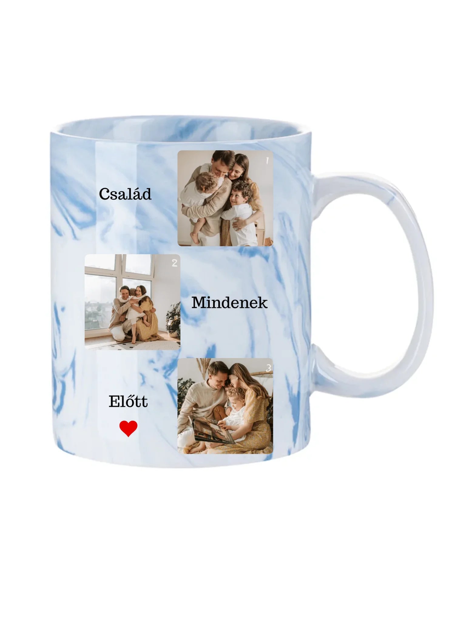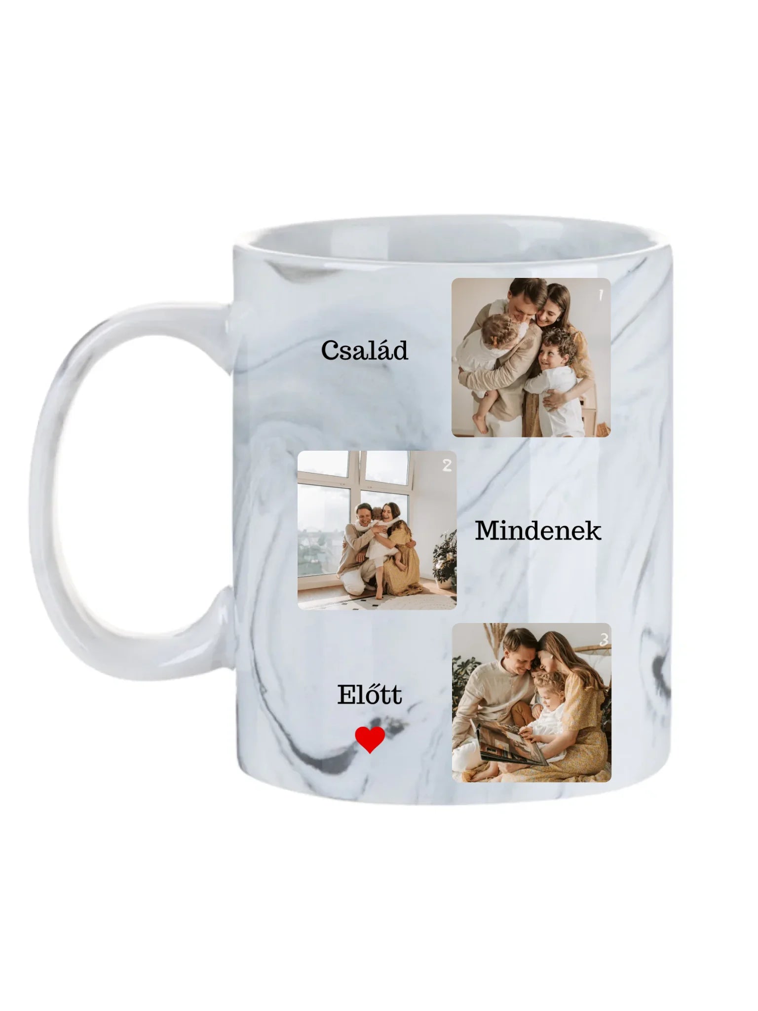 Család mindenek előtt fotókollázs - Ajándék Családnak - Fényképes bögre