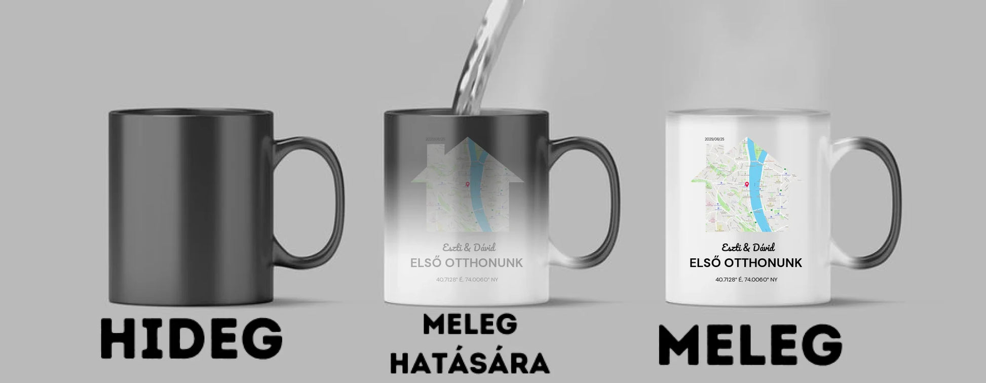 Ez a különleges varázs bögre első ránézésre egy egyszerű, sötét színű bögre, ám forró ital hatására életre kel! Ahogy a bögre felmelegszik, a rejtett minta vagy fotó lassan előtűnik, varázslatos meglepetést okozva minden korty mellett. Ideális választás, ha valami igazán különlegeset keresel.