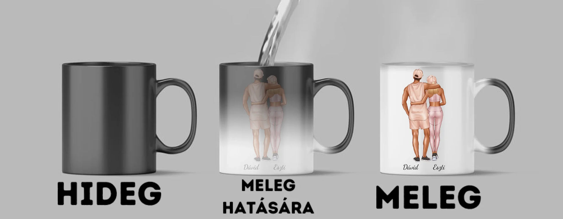 Ez a különleges varázs bögre első ránézésre egy egyszerű, sötét színű bögre, ám forró ital hatására életre kel! Ahogy a bögre felmelegszik, a rejtett minta vagy fotó lassan előtűnik, varázslatos meglepetést okozva minden korty mellett. Ideális választás, ha valami igazán különlegeset keresel.