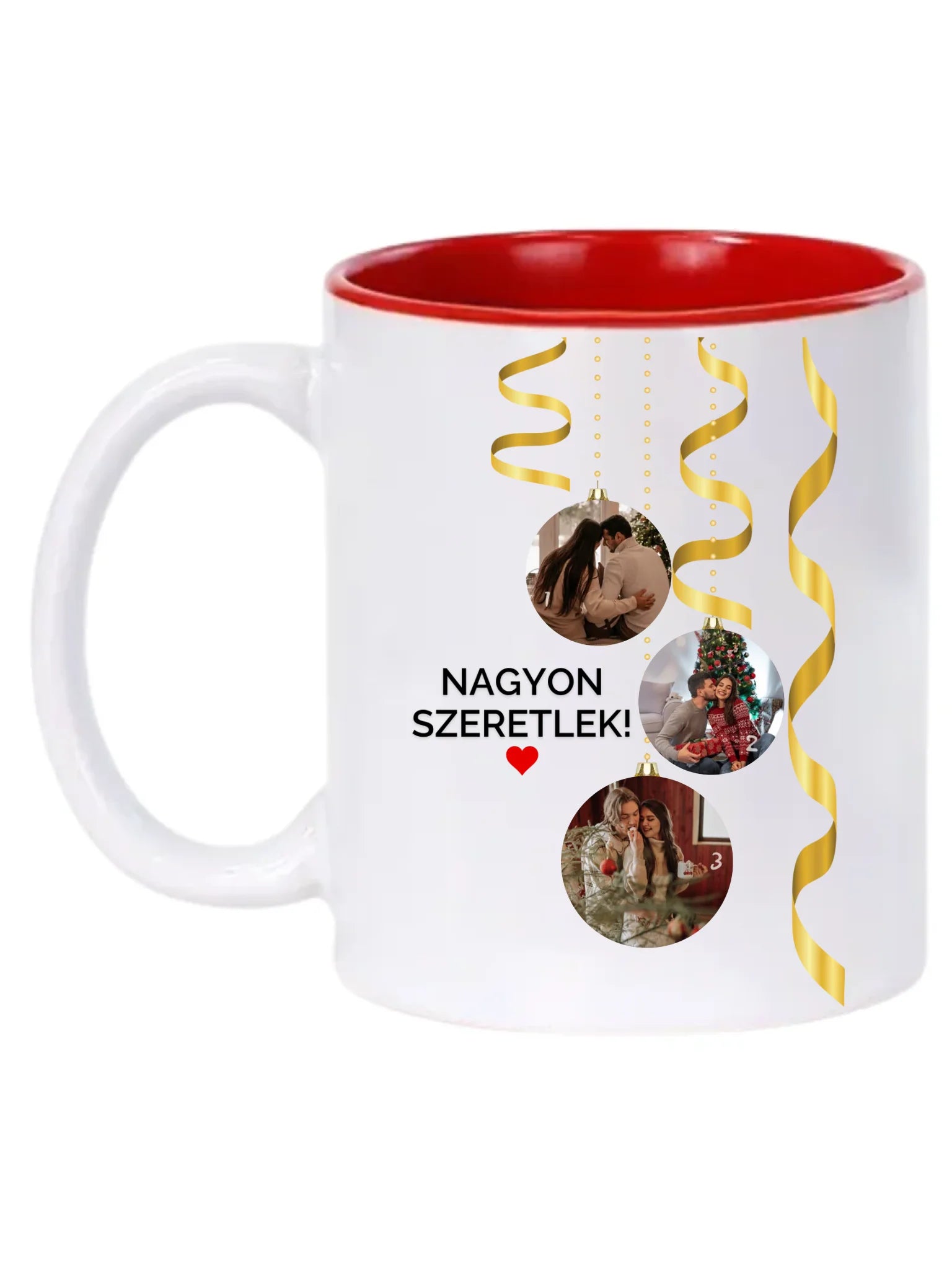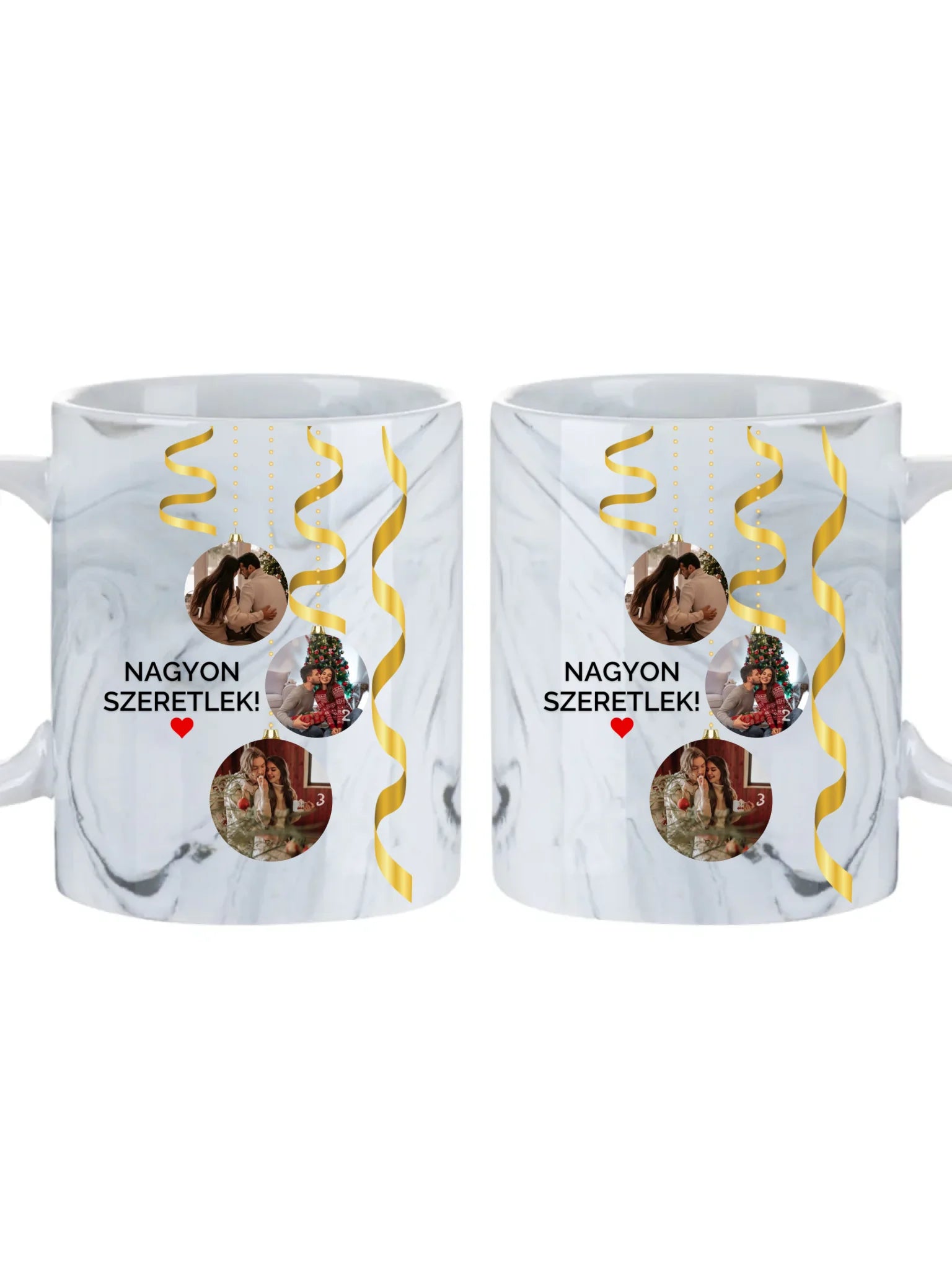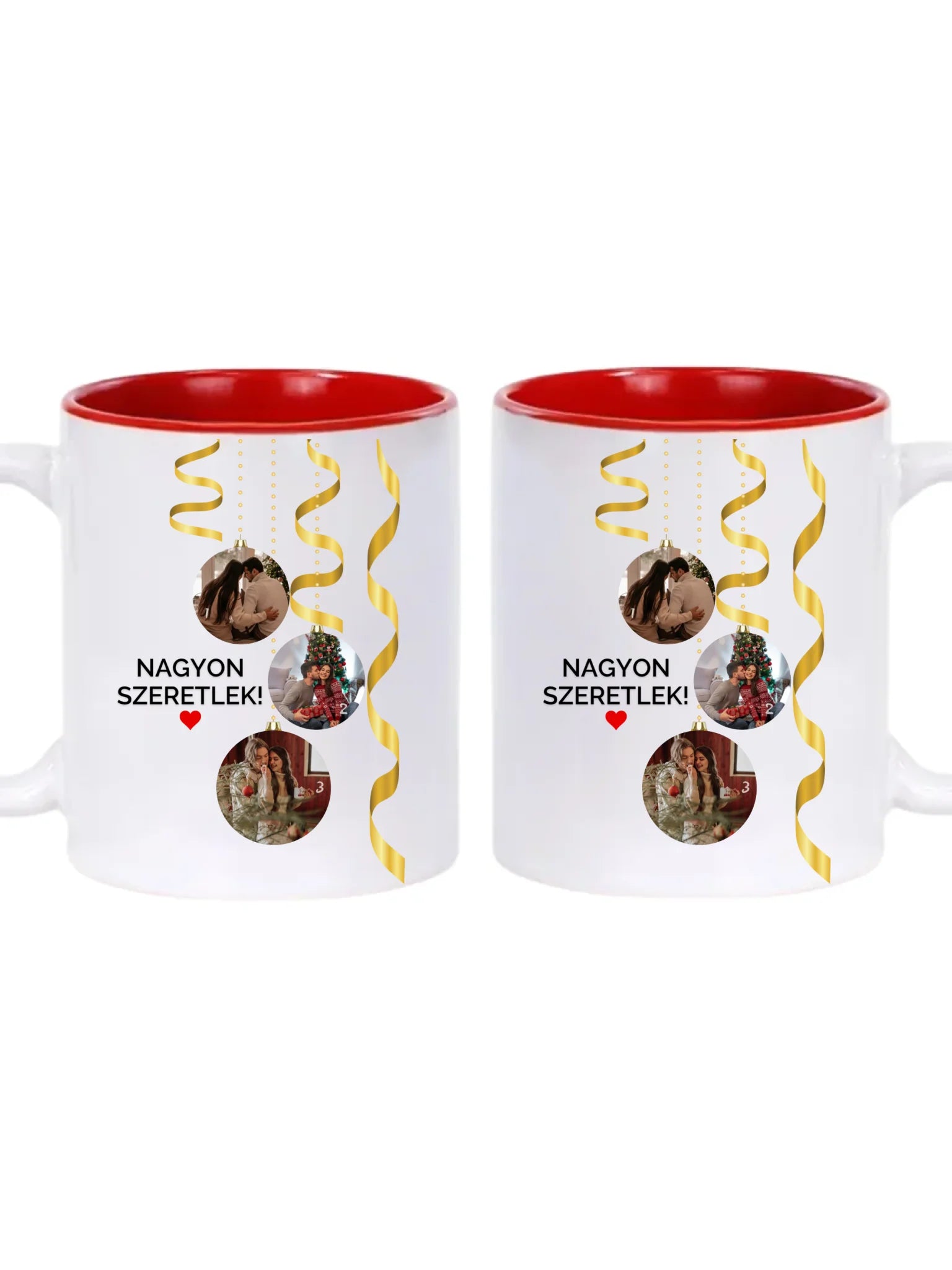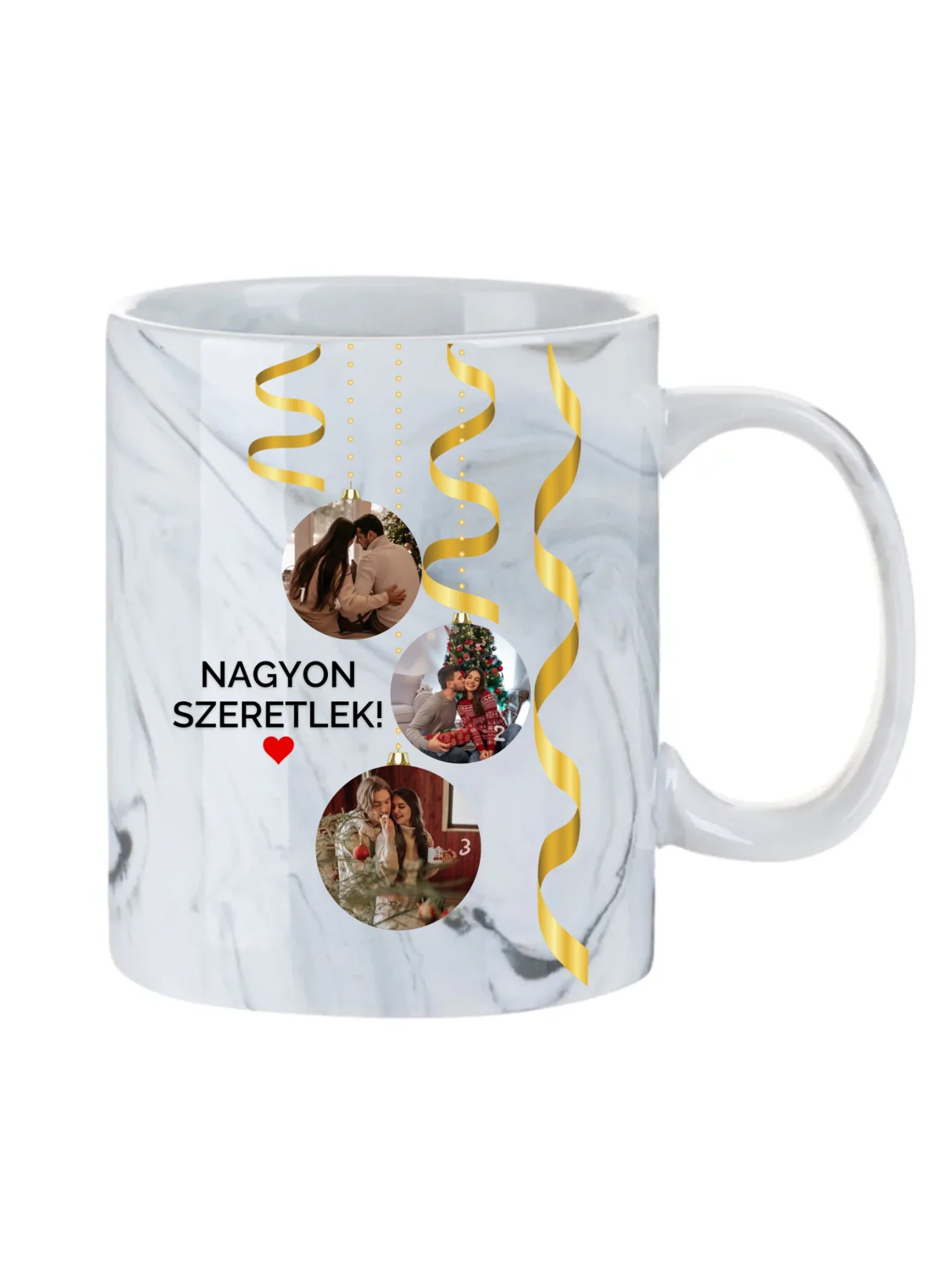Karácsonyi gömbök fotókollázs - Ajándék Karácsonyra - Fényképes bögre