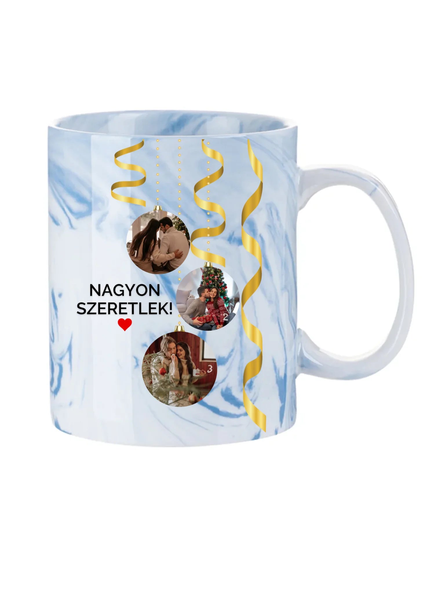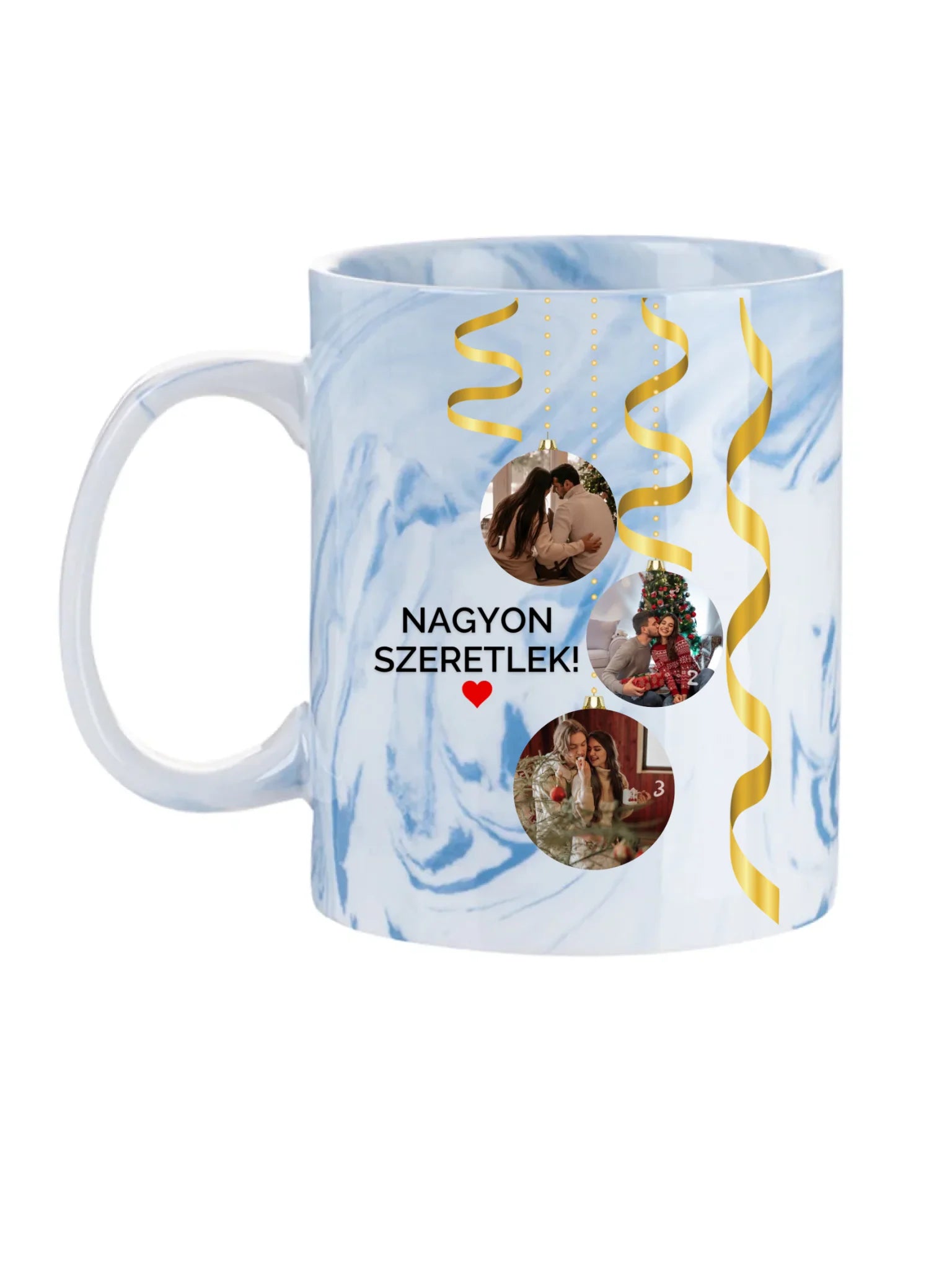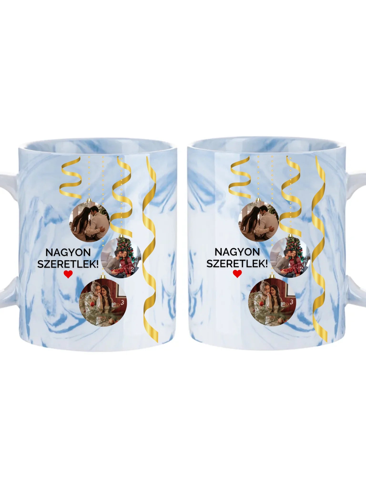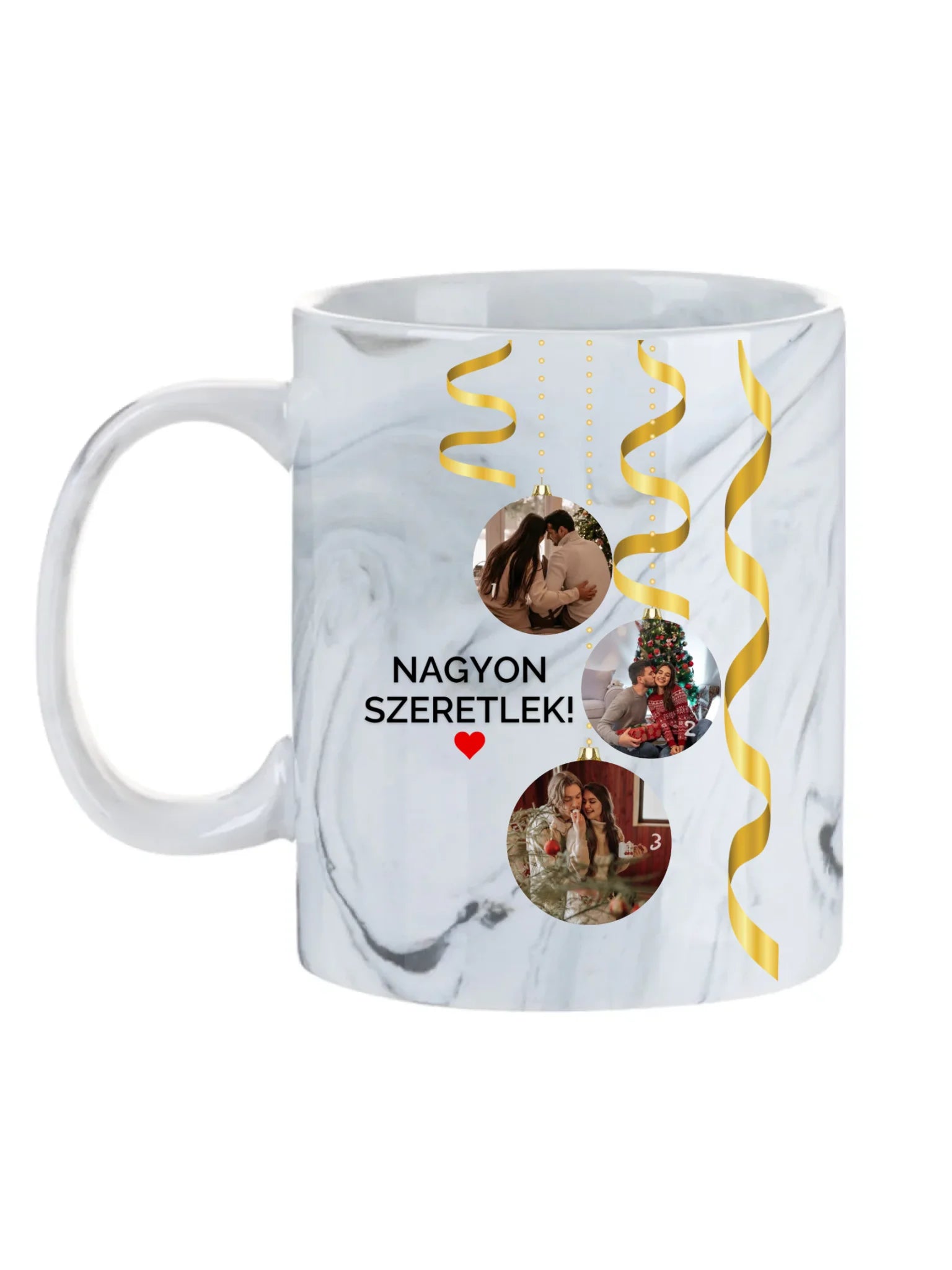 Karácsonyi gömbök fotókollázs - Ajándék Karácsonyra - Fényképes bögre