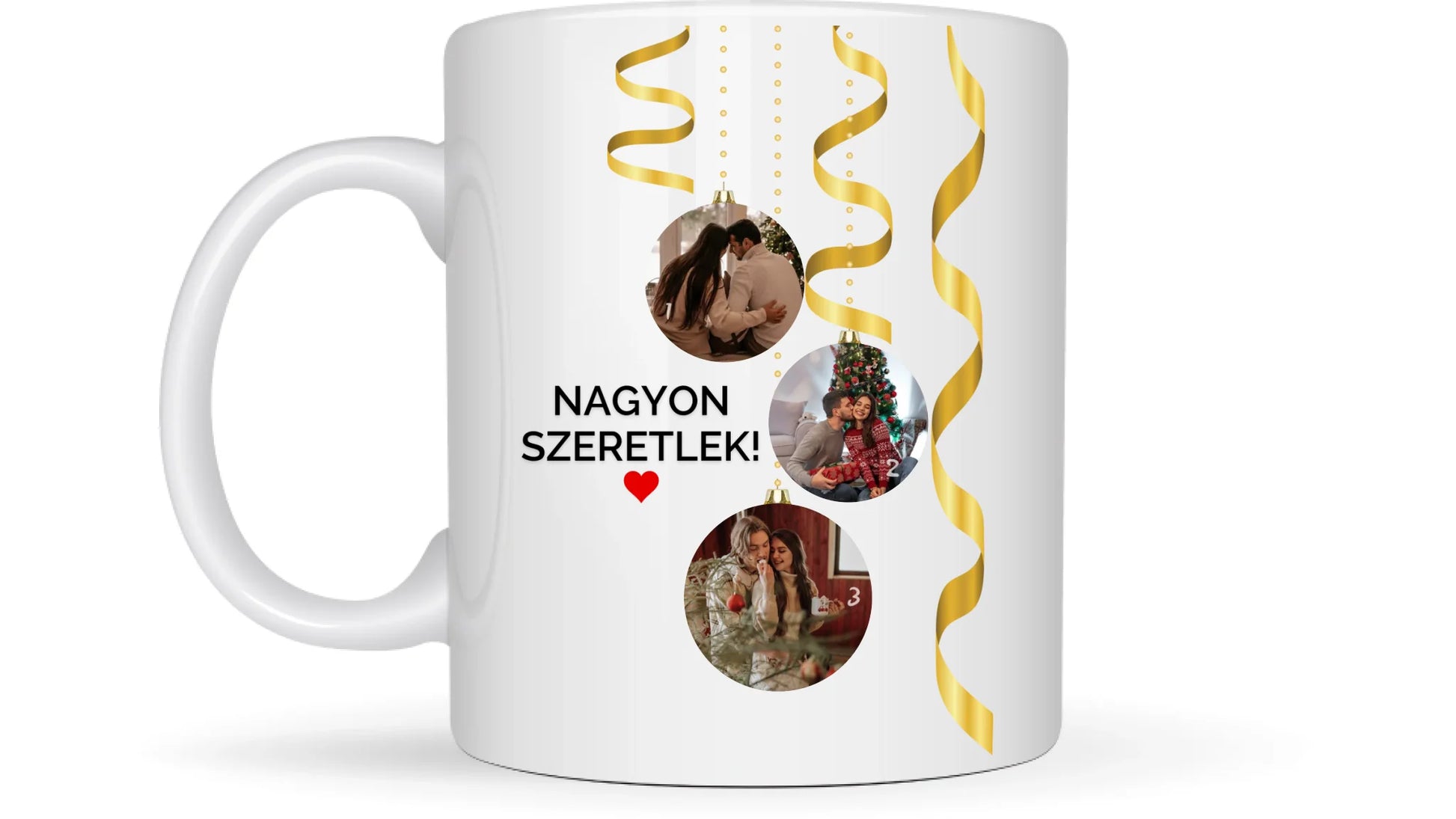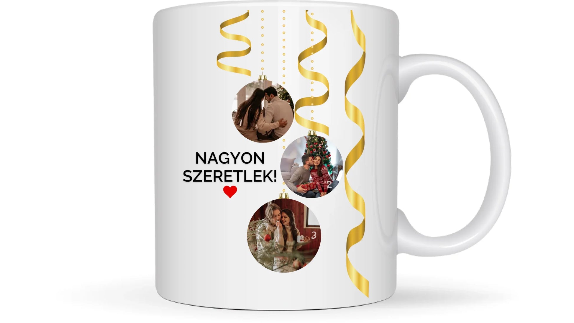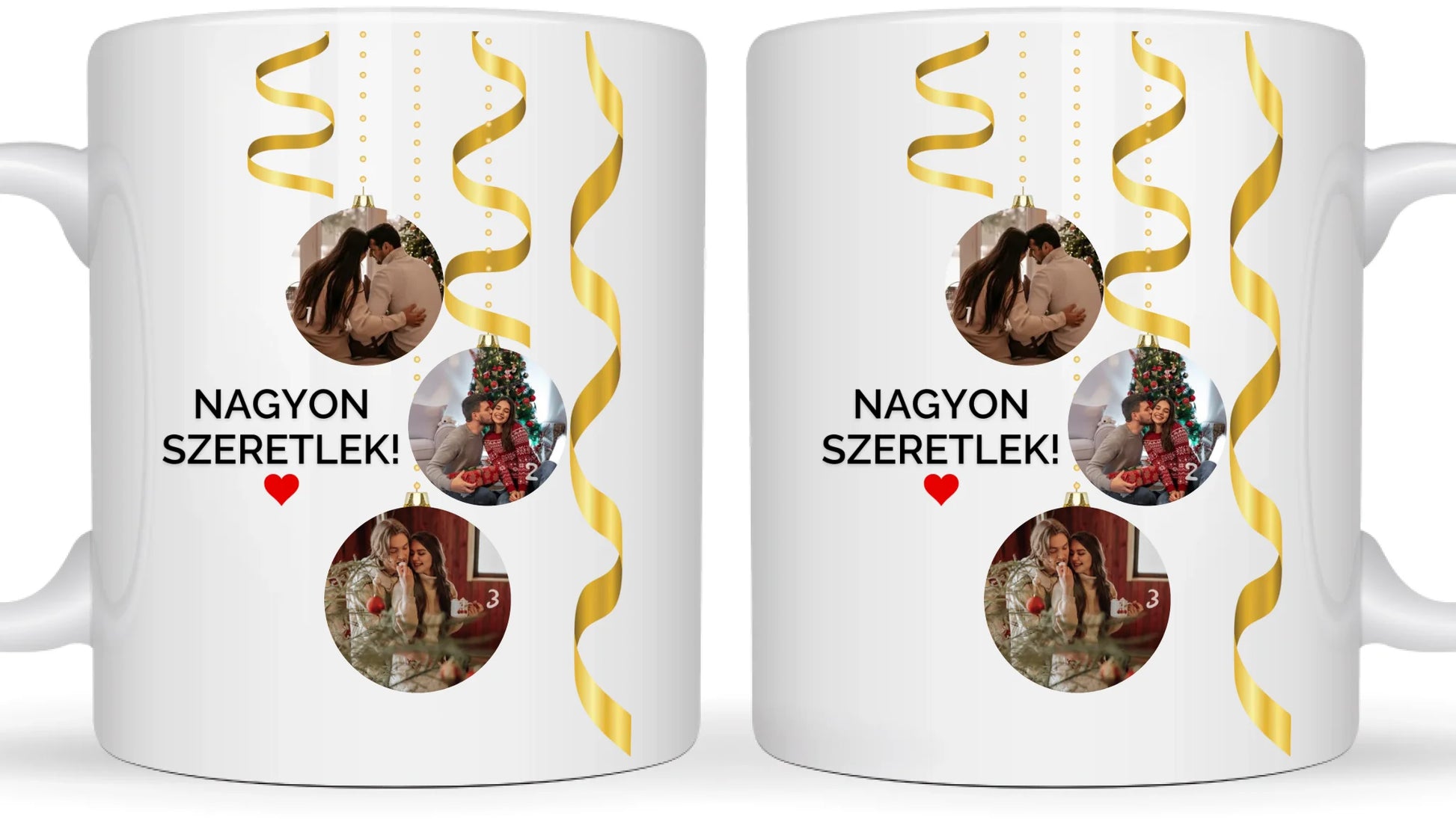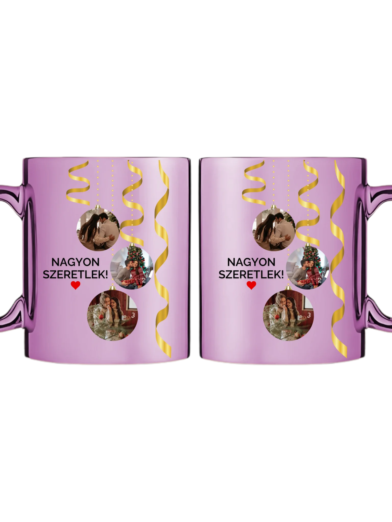 Karácsonyi gömbök fotókollázs - Ajándék Karácsonyra - Fényképes bögre