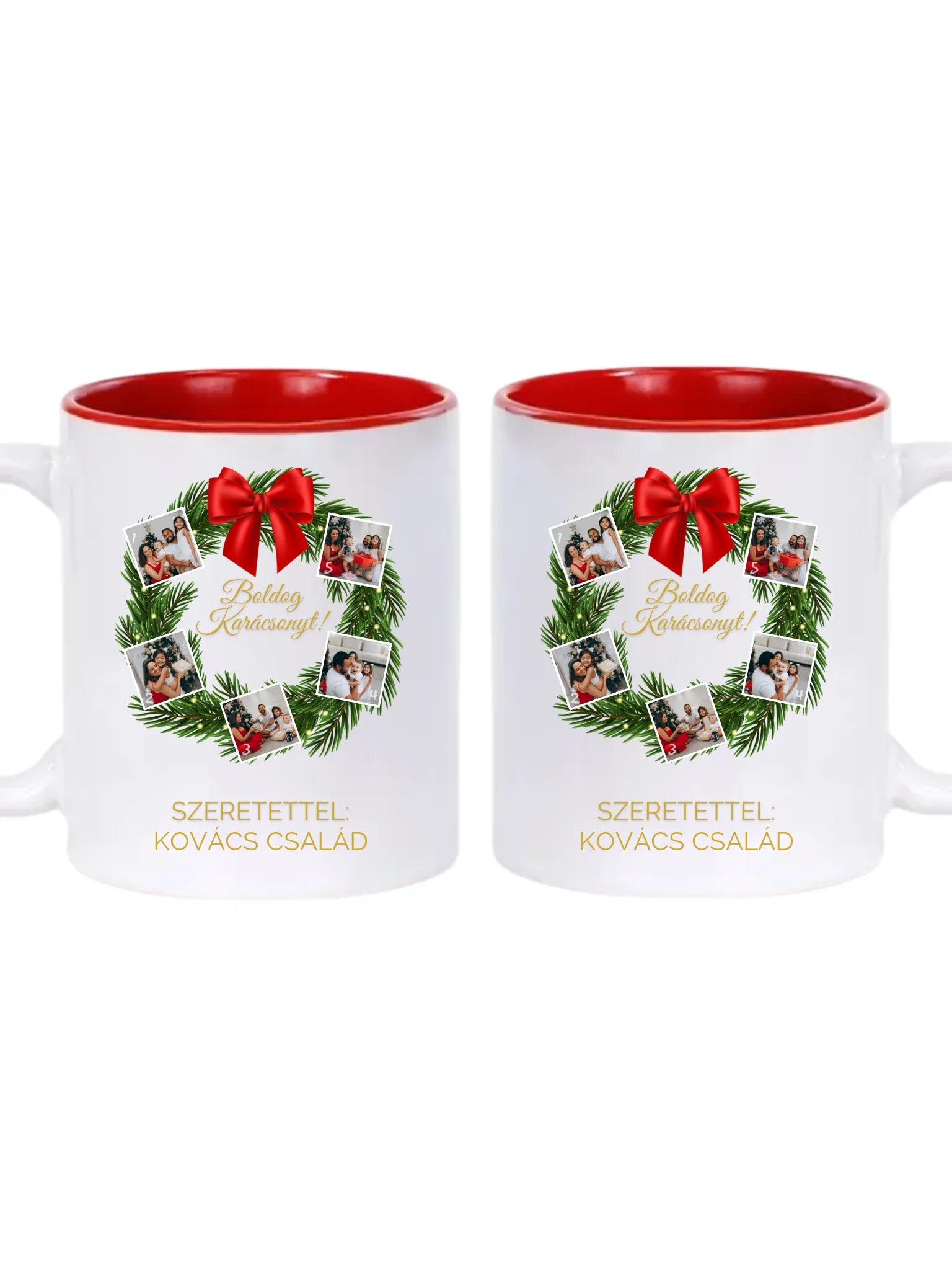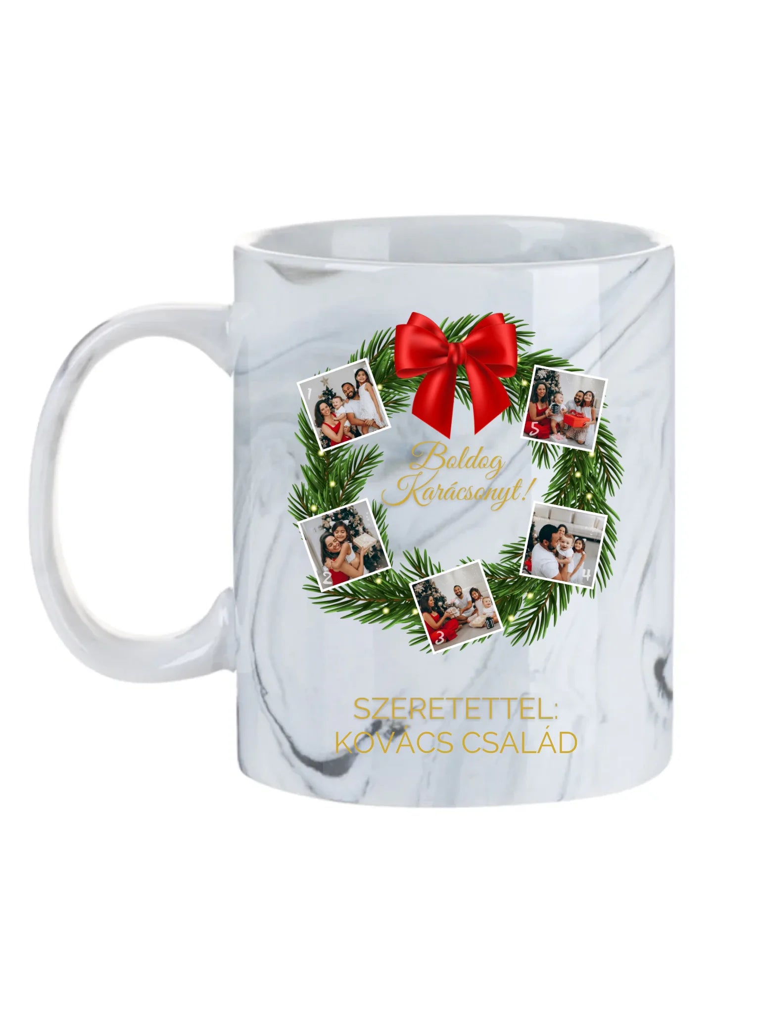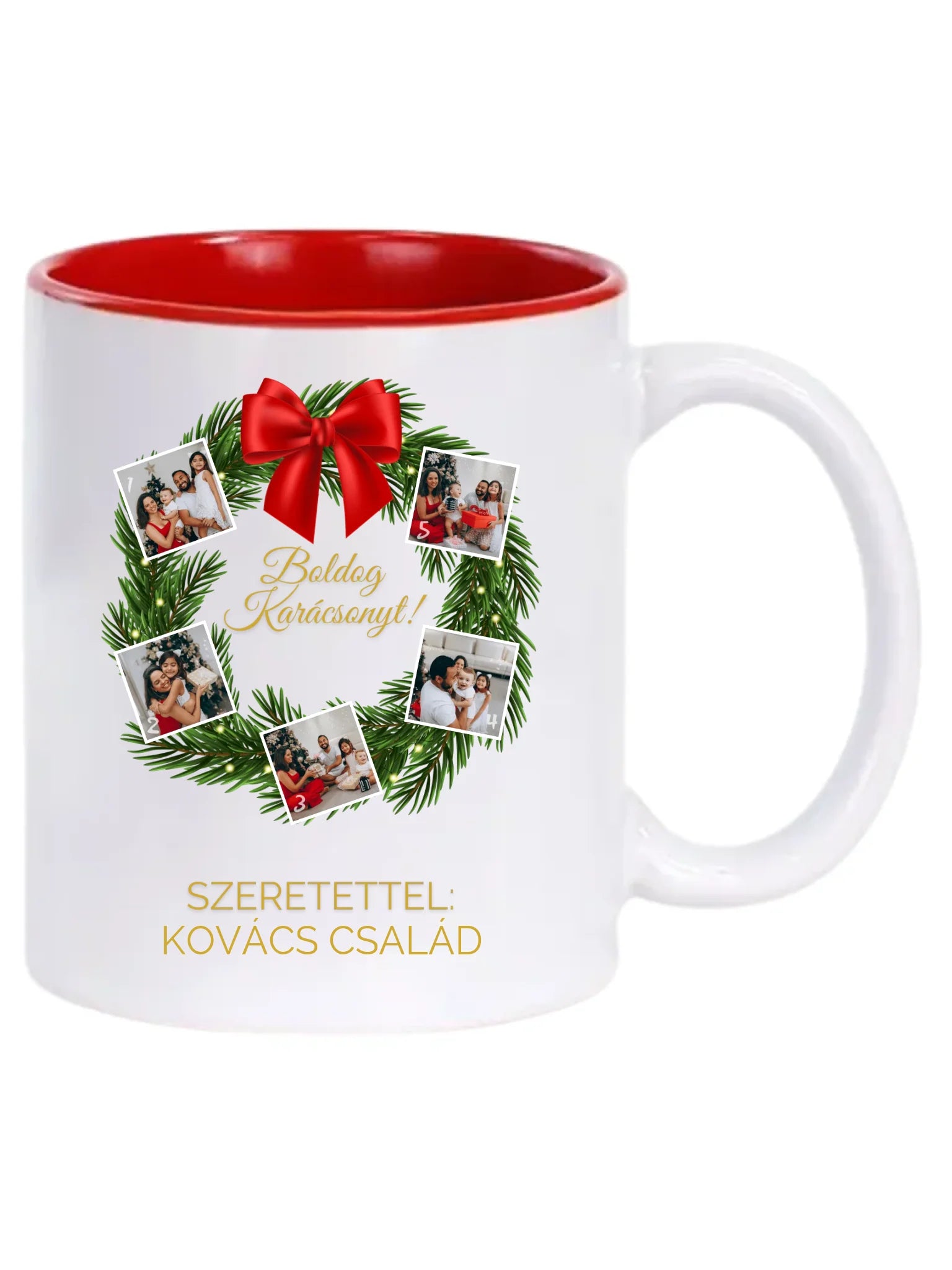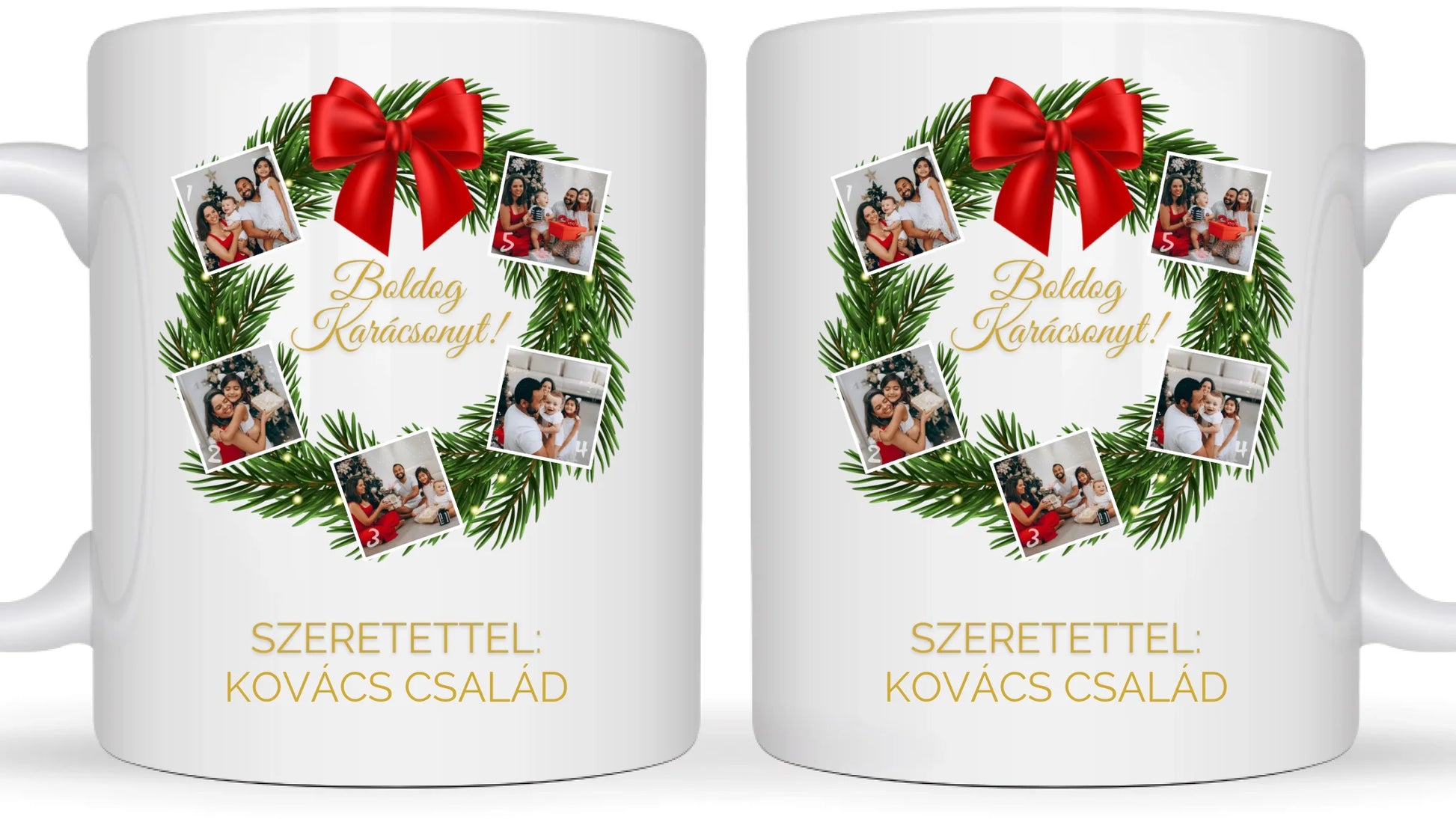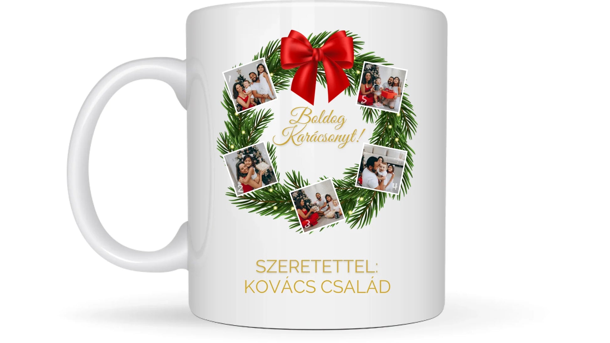 Karácsonyi koszorú fotókollázs - Ajándék Karácsonyra - Fényképes bögre
