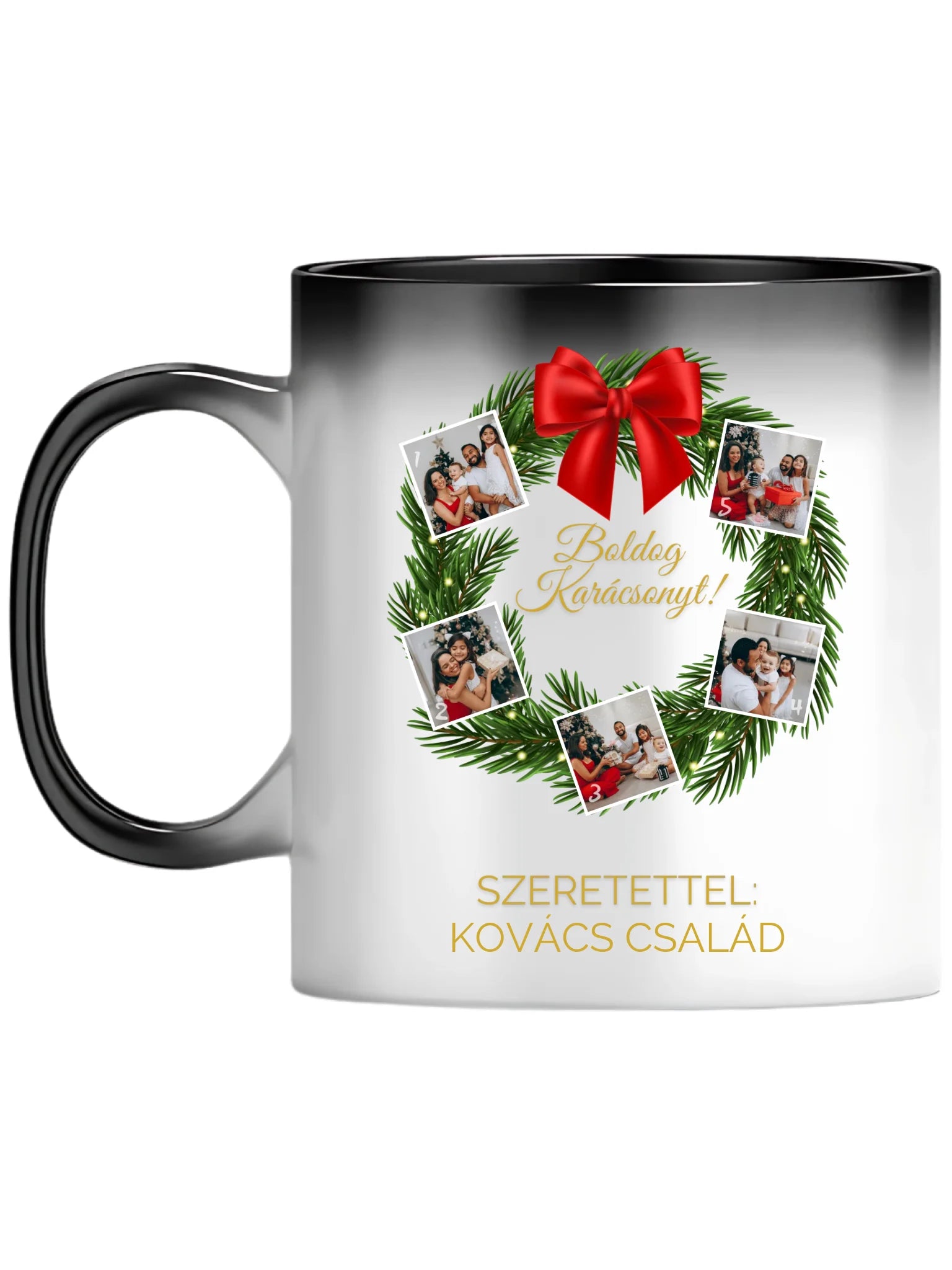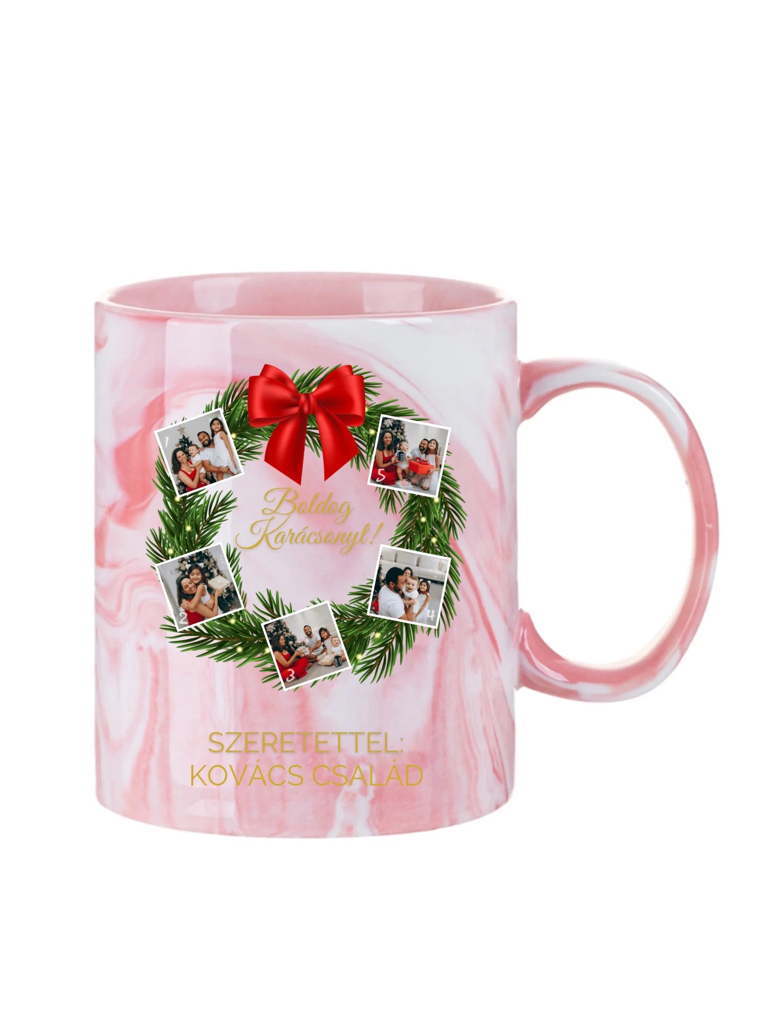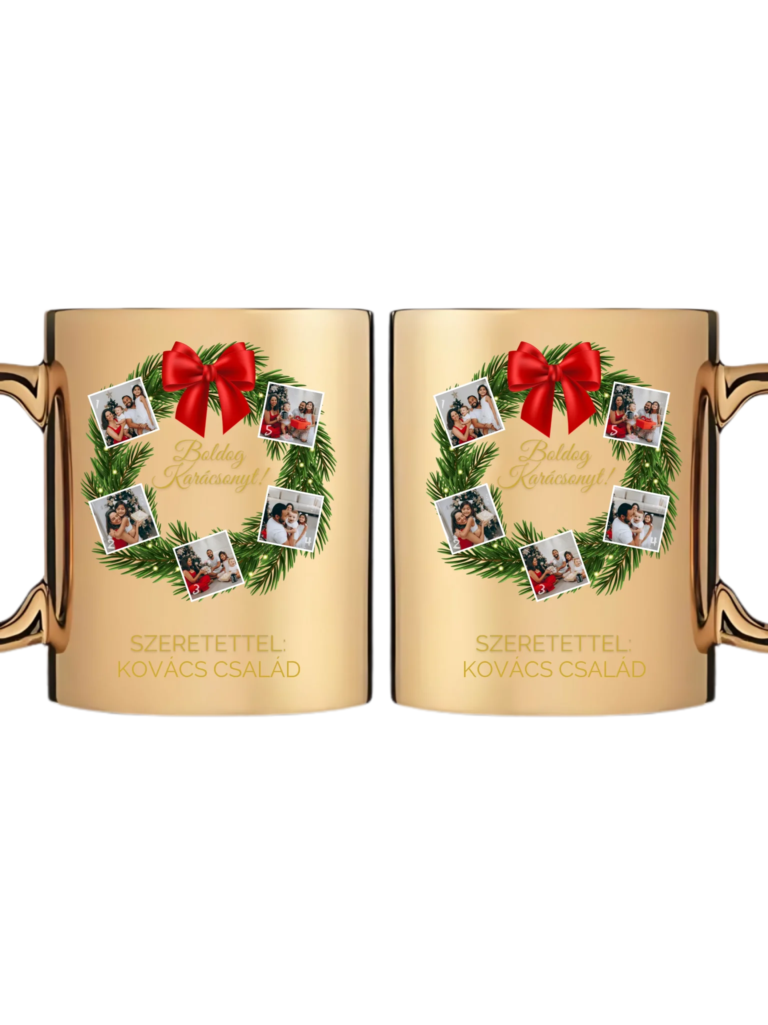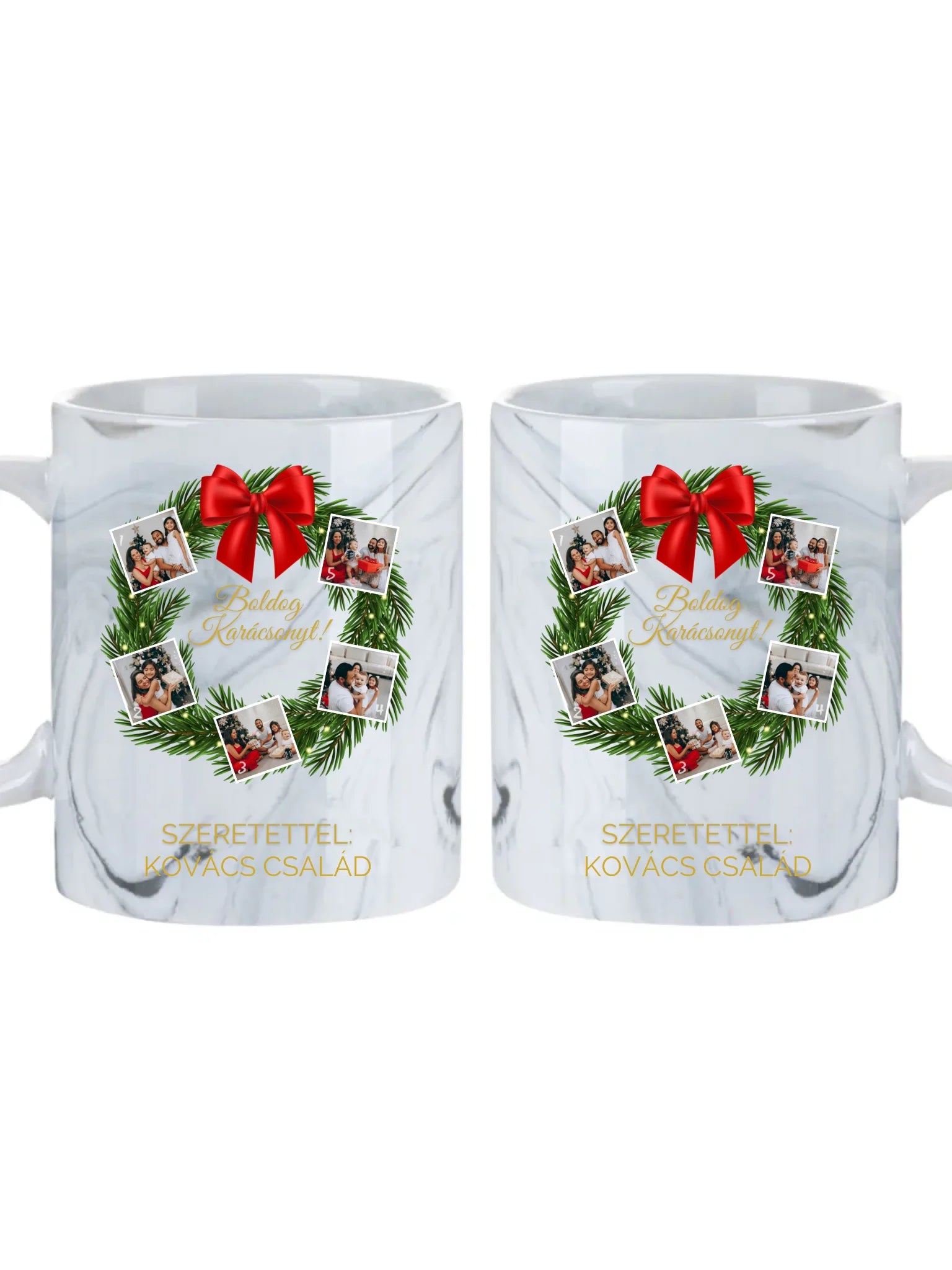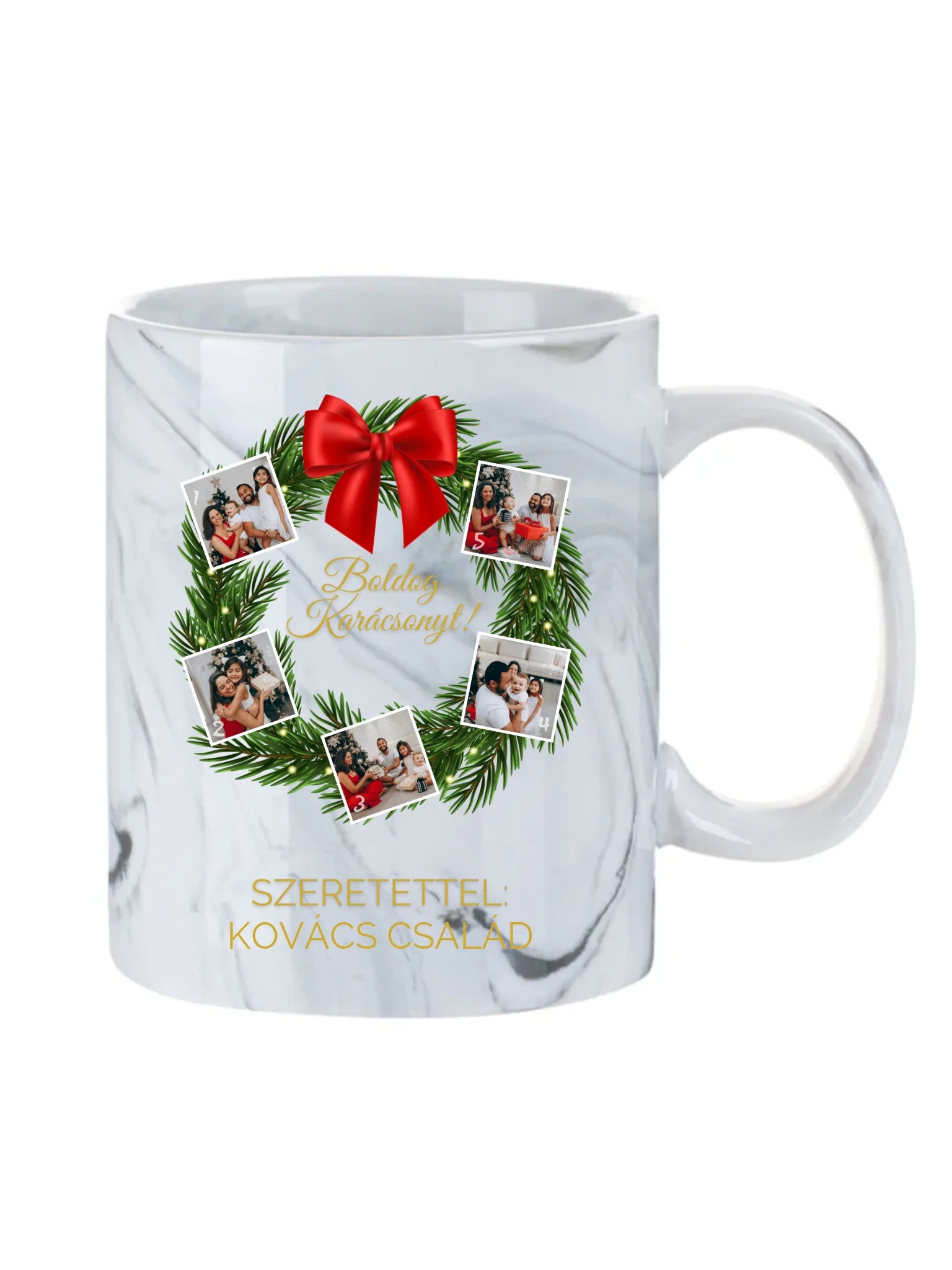 Karácsonyi koszorú fotókollázs - Ajándék Karácsonyra - Fényképes bögre