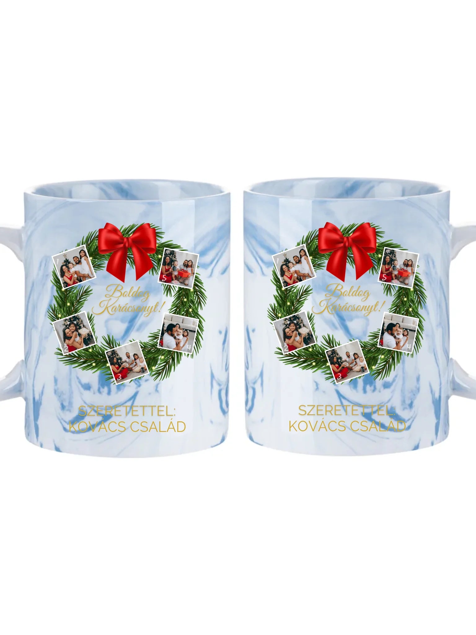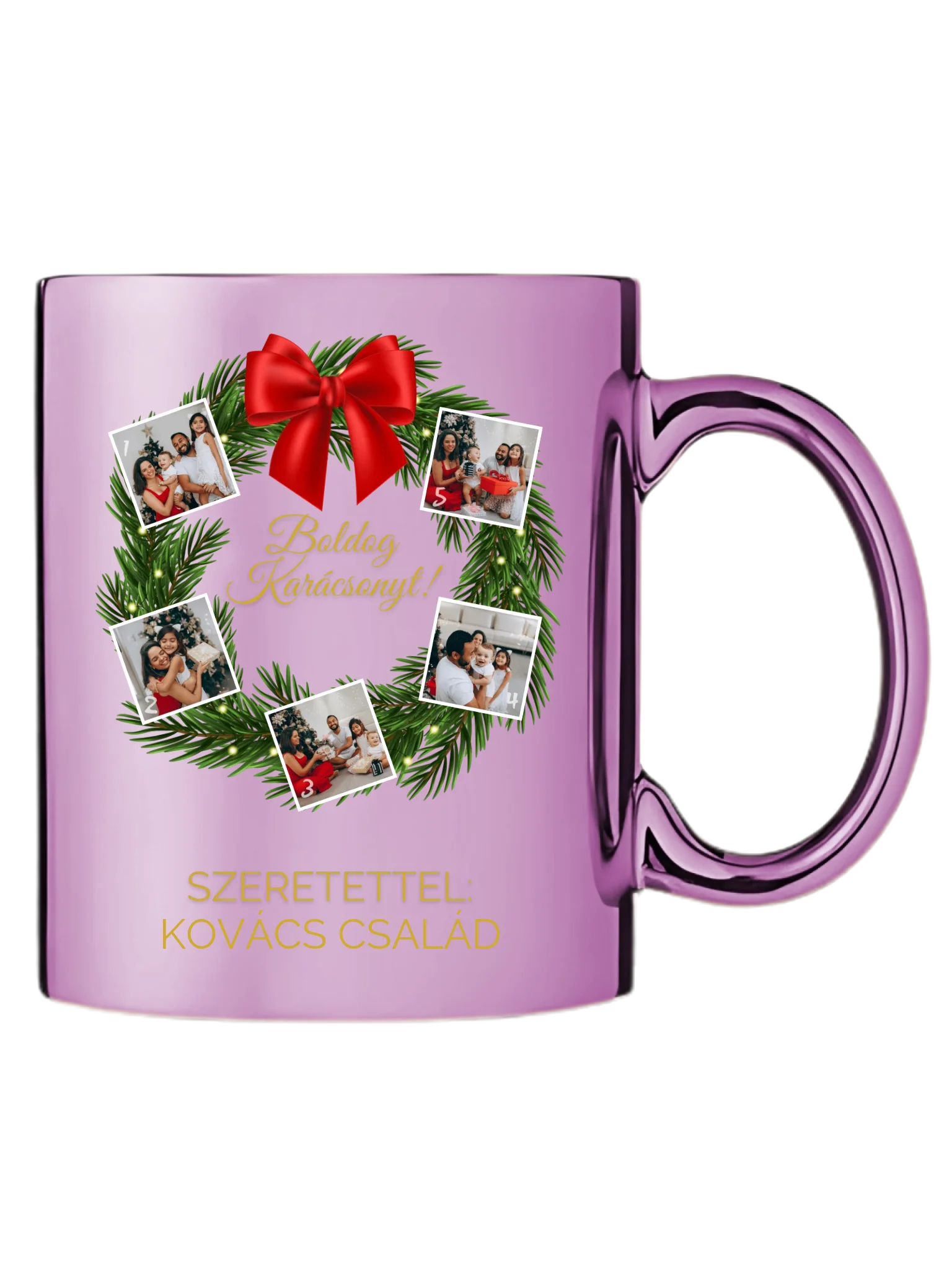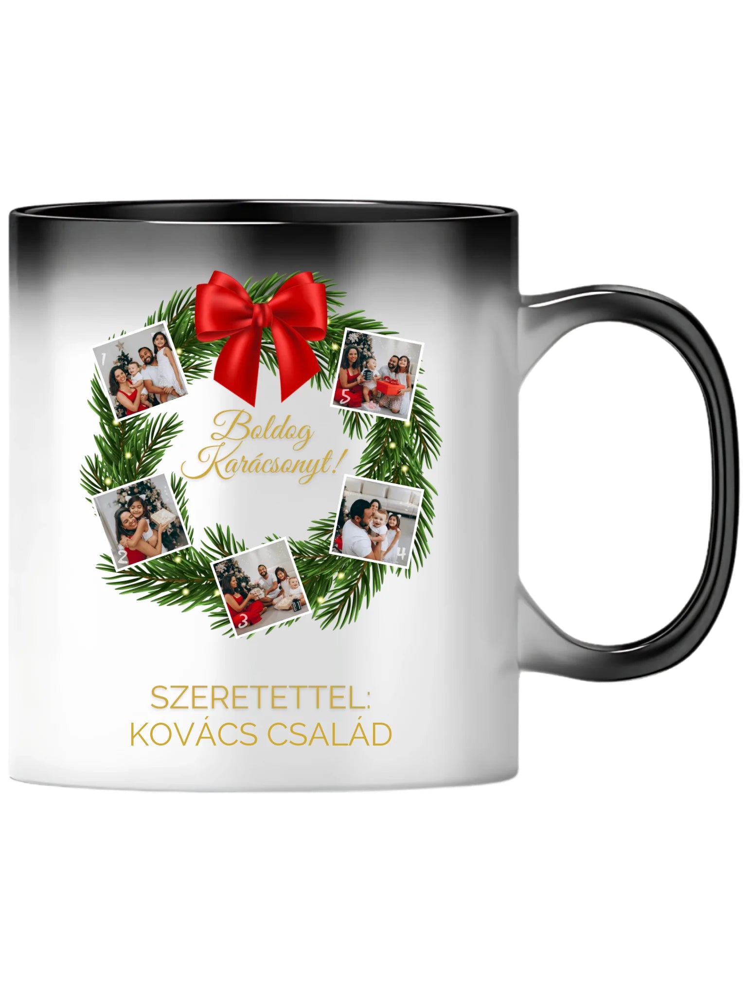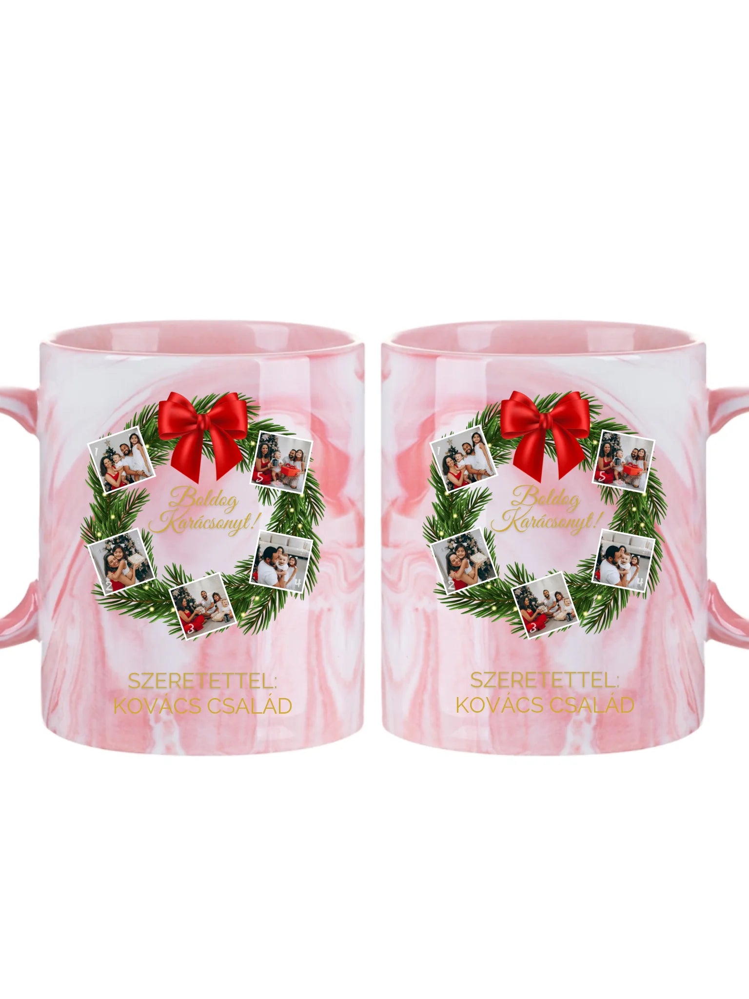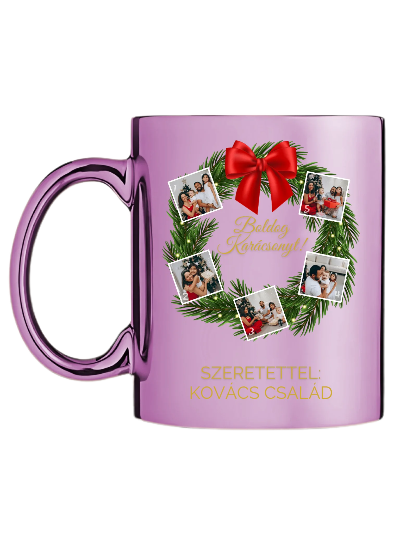 Karácsonyi koszorú fotókollázs - Ajándék Karácsonyra - Fényképes bögre
