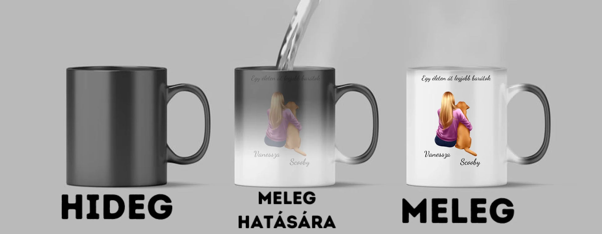 Ez a különleges varázs bögre első ránézésre egy egyszerű, sötét színű bögre, ám forró ital hatására életre kel! Ahogy a bögre felmelegszik, a rejtett minta vagy fotó lassan előtűnik, varázslatos meglepetést okozva minden korty mellett. Ideális választás, ha valami igazán különlegeset keresel.